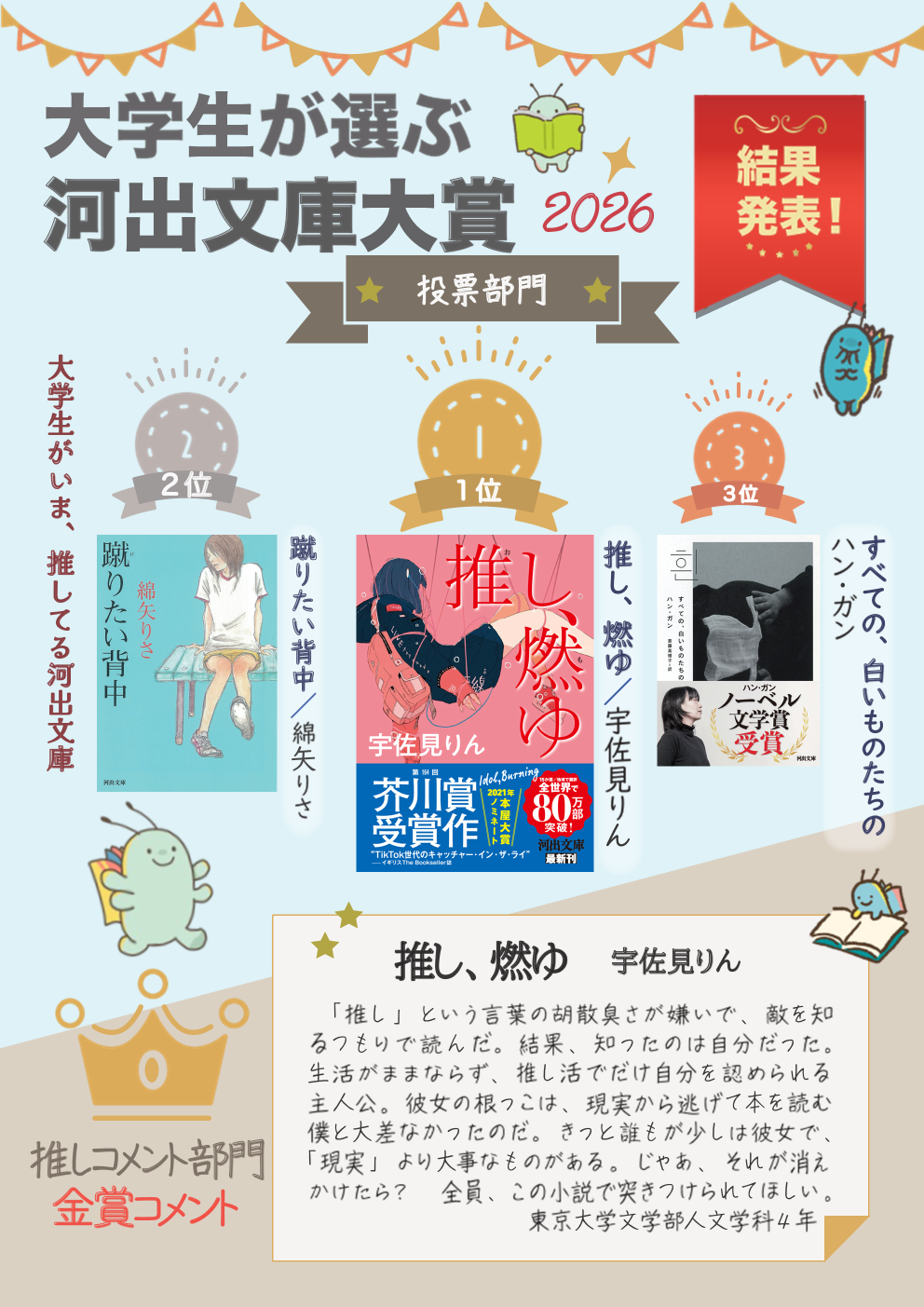 【河出文庫大賞】投票部門:ベスト1~3位 コメント部門:大賞1名