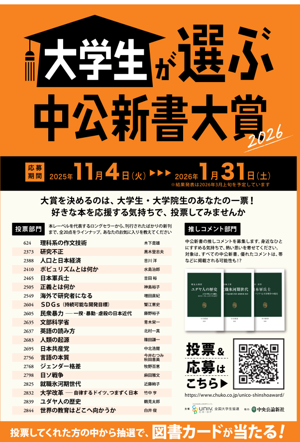 大学生が選ぶ中公新書大賞 2026|中央公論新社