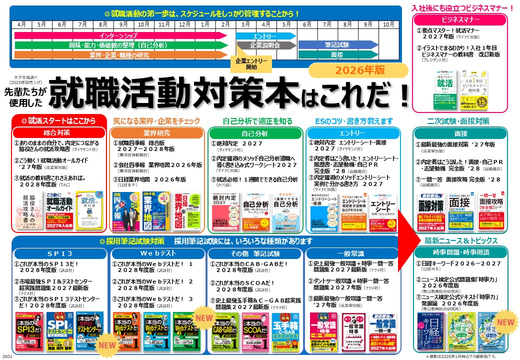 大学生協の年間売上データ(2025年1月~12月)から選んだ就活対策本32選です。