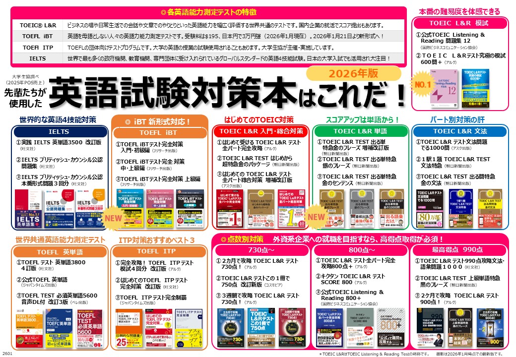 *TOEFLiBT試験は2026年1月より新形式に変更になりました。