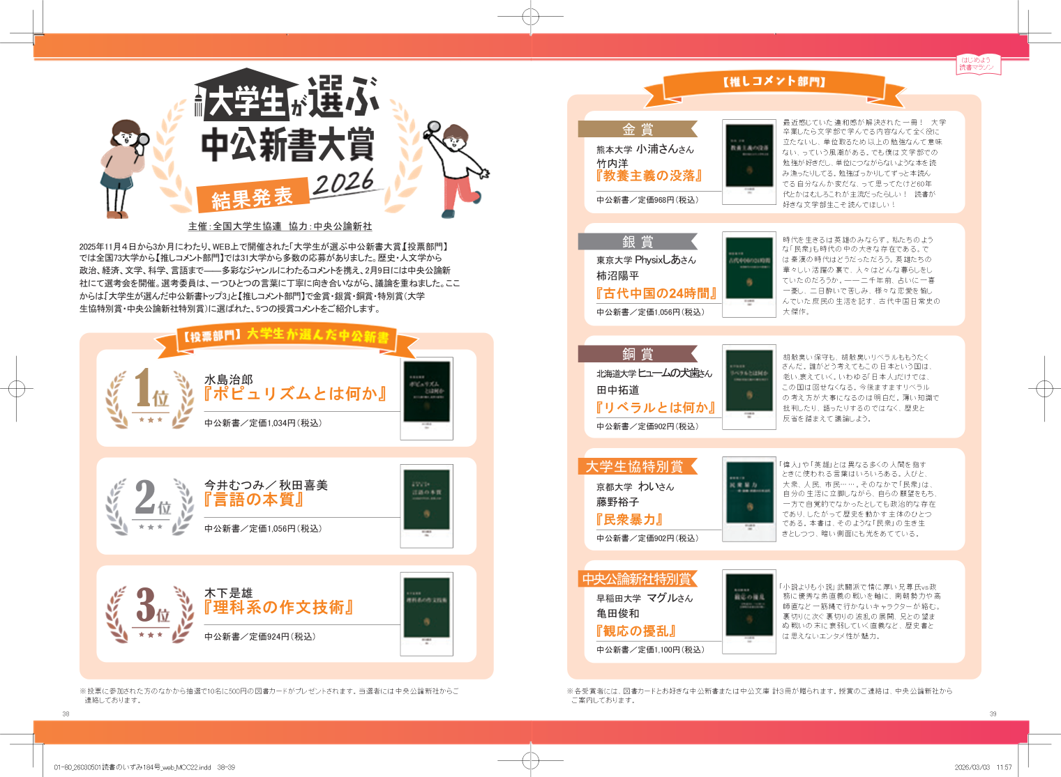 【中公新書大賞】投票部門:ベスト1~3位 コメント部門:金賞、銀賞、銅賞、特別賞2名