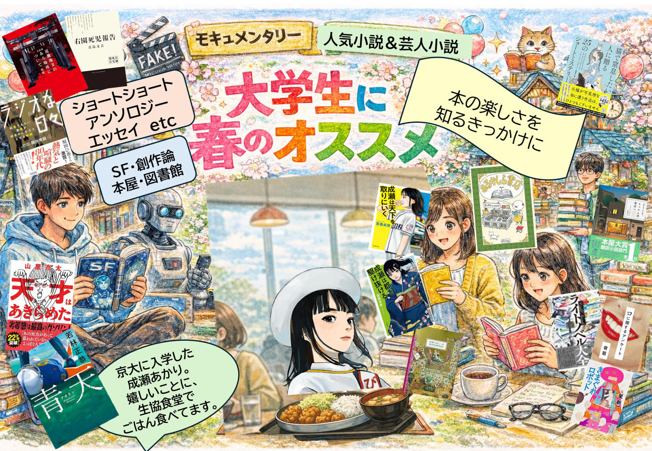 芸人や人気小説家による昨今話題の本にくわえ、ショートショートや、短編アンソロジー、エッセイ他、