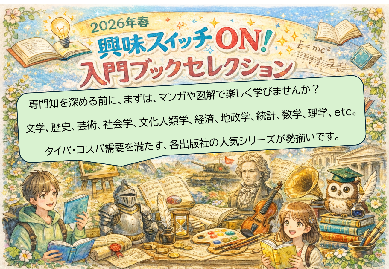 専門知を深める前に、興味・関心を持ったテーマをまずは、マンガや図解で楽しく学べるフェアです。