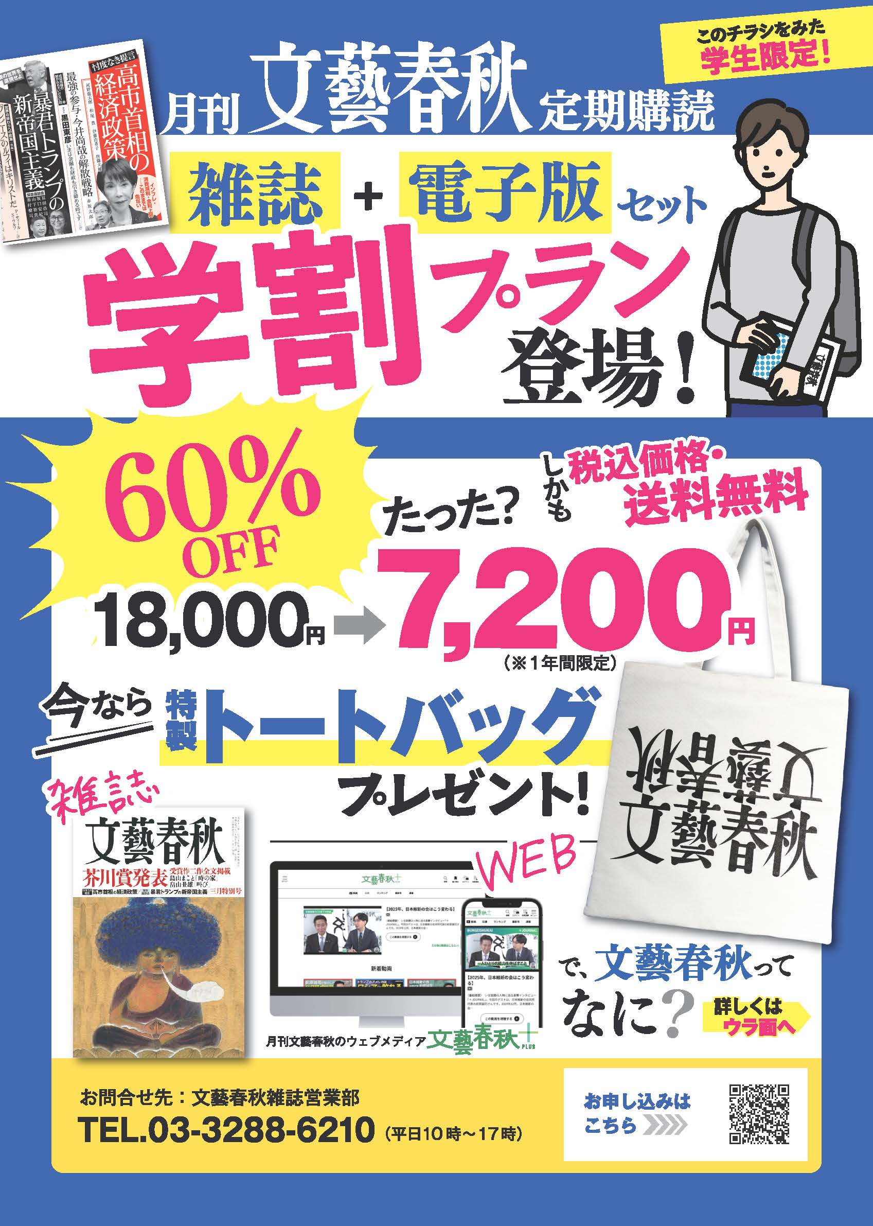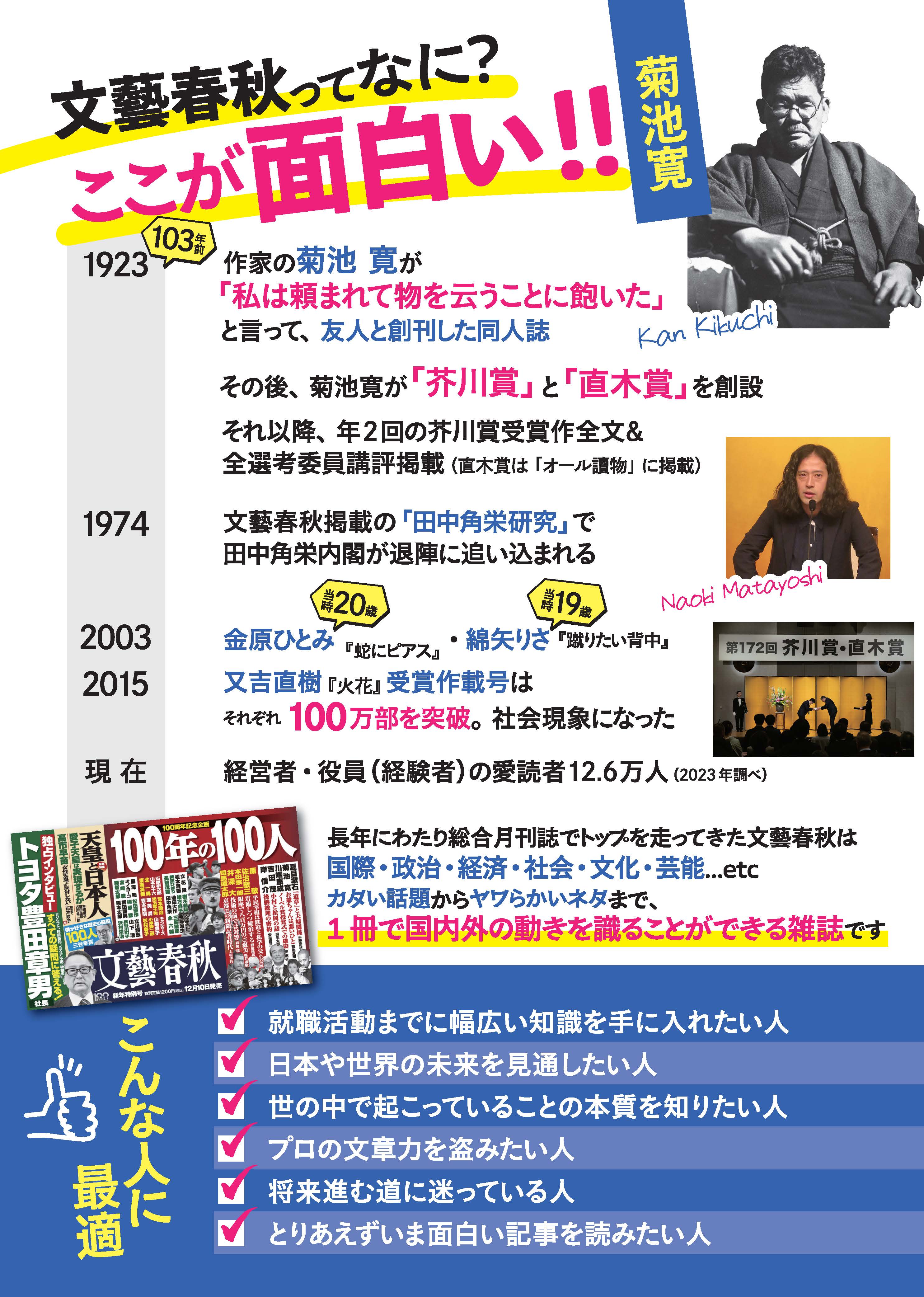 学生限定!「(月刊)文藝春秋」1年間の学割プラン